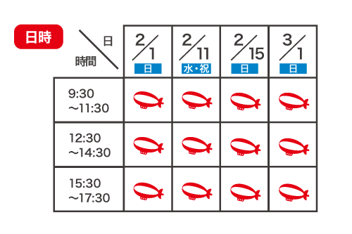 定員に達した場合、他に空いている回へのご案内をさせていただくことがございます。